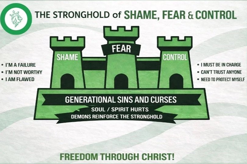 This is a common stronghold that many come under - this was an unholy trinity formed just after Adam and Eve ate the fruit in Gen 3:8-10 “The Lord God called to the man, and said to him, ‘Where are you?’ Adam said, I heard the sound of you in the garden and I was afraid (fear) because I was naked (shame); so, I hid myself (control).”